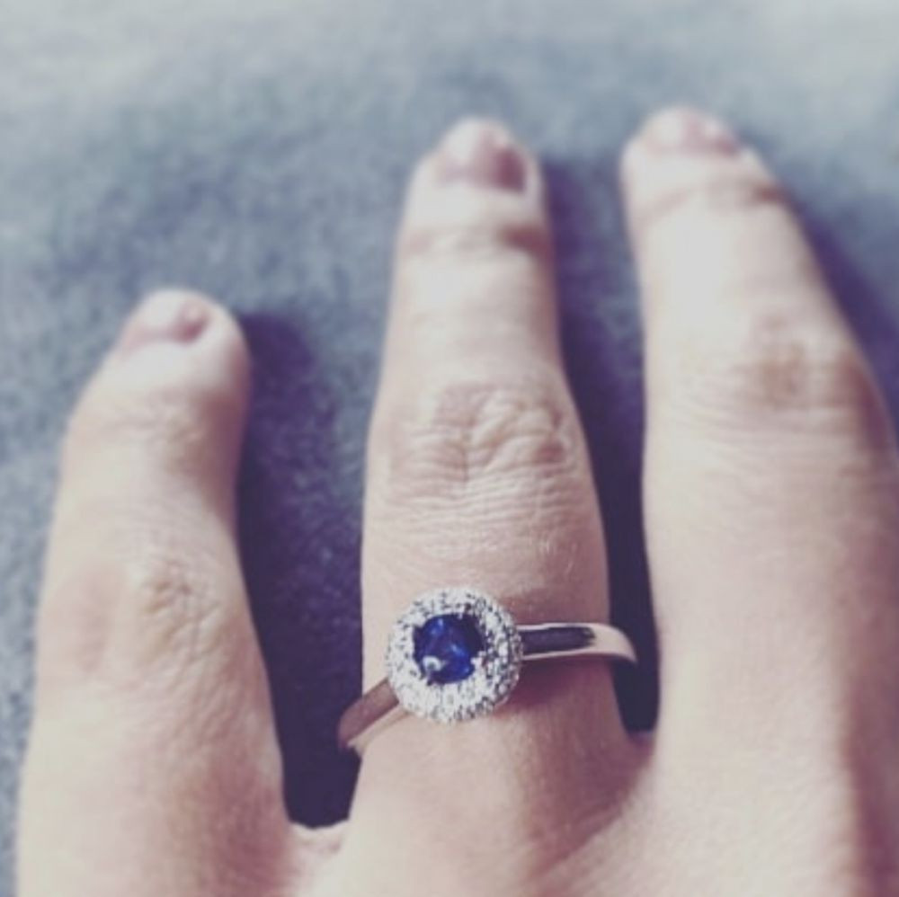 De entouragering is afgewerkt met een glinsterende diamant die een steengewicht heeft van 0.23 crt en wordt vergezeld door een prachtige saffier met een gewicht van 0.38 crt. Deze stenen geven de ring zijn elegante uitstraling en maken het tot een echte eyecatcher die u niet meer af wilt doen.